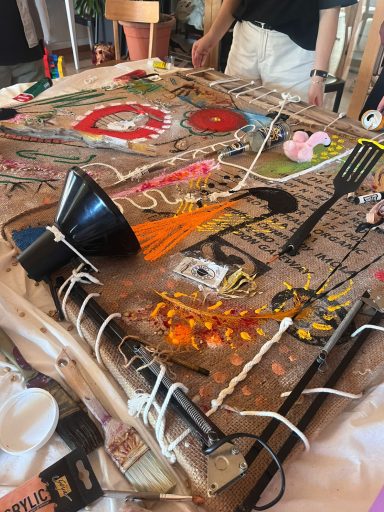 Collective Trace is a participatory workshop and installation held in Zurich that invites to reflect on identity and connection through the technique of assemblage. Participants were invited to bring or choose small objects and fragments that carry personal meaning.Together, we assembled these elements into a shared artwork that represents diverse subjectivities woven into a common space. The final piece embody both individuality and interconnectedness, leaving behind a collective imprint of the group’s encounter.